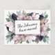Un hermoso y gran ramo de flores de magnolia rosadas da un tema tropical a nuestra tarjeta postal de cambio de dirección. Todo el texto en la parte frontal y posterior de nuestra tarjeta de anuncio de nueva dirección se puede revisar fácilmente en la plantilla al finalizar la compra.