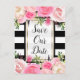 Postal De Anuncios Rayas Negras Blancas Floral Rosa Guardar La Fecha