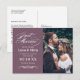 Postal De Anuncios Recién Casados Foto de Boda Elegante Morado Ciruel