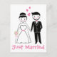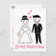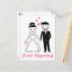Anuncie con orgullo a sus amigos y familiares que usted y su pareja acaban de atar el nudo con esta linda tarjeta postal de anuncio de boda de recién casados con novia y novio de dibujos animados en rosa y negro.
