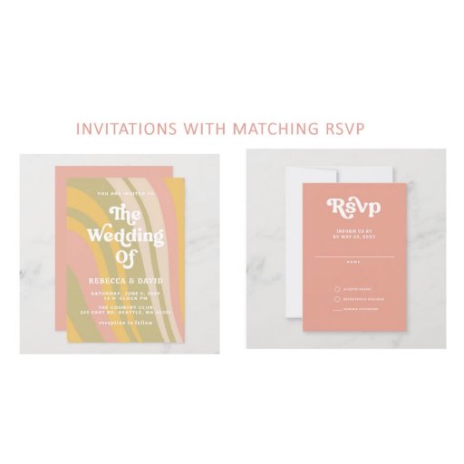 Retro Groovy 70s Green Pink Yellow Wedding SetDiseñado por Maria G