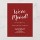 Esta tarjeta postal de invitación móvil movida de color rojo cepillado Hemos movido es la tarjeta de cambio simple perfecta de dirección. El diseño es único y artístico, con una caligrafía moderna en rojo y blanco.