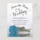 Estas hermosas postales son una excelente manera de hacer saber a sus amigos y familia que ahorren la fecha para su próximo boda. El diseño se caracteriza por un magnífico rosa azul celeste, turquesa o de color azul celeste que se refleja en un estanque con olas y ondas. El texto incluye caligrafía de script de lacy. La parte de atrás tiene un lindo gráfico que dice "lápices en" con espacio para una nota personalizado que puede incluir su sitio web boda.