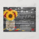 ¿Ha habido un cambio de planes en cuanto a la fecha de su boda? Personalice fácilmente estas tarjetas postales rústicas de cambio de fecha con girasoles y rosas y envíelas a familiares y amigos para que sepan cómo mantenerse actualizados sobre su celebración. El diseño floral único de acuarela de Raphaela Wilson representa una ilustración a mano de girasoles amarillos y rosas rojas en un frasco de mason iluminado con luces de cuerda. Perfecto para bodas de otoño, o cualquier estación realmente... ya sea verano, primavera o invierno. ¿Prefiere sus frascos de mason y flores sin cuerda de arpillera y cinta? Al personalizar aún más el diseño, puede descubrir capas ocultas con opciones adicionales, incluso cambiar la madera de granero vintage gris a un color diferente como burgundy oscuro, azul marino, verde azulado, etc. Incluso puede mover los pétalos de rosa y girasol en la parte delantera y trasera. También puede personalizar la fuente de escritura elegante blanca y otras selecciones con el estilo de letra de su elección: ¡las opciones son infinitas! Estas tarjetas postales rústicas de cambio de fecha son una forma hermosa y económica de mantener a sus seres queridos al tanto de las actualizaciones de cancelación. Categoría: tarjetas de cambio de fecha; tarjetas postales de cambio de planes; y tarjetas de aplazamiento de boda. Tema de color de boda