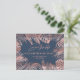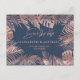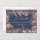 Postal De Anuncios Rosa oro azul marino hojas tropicales romántico