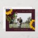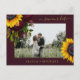 Grandes girasoles dorados amarillos y rosas burdeos rojos imitan la caligrafía de moda dorada con letras a mano estilo y marco haciendo una moderna foto rústica salva la fecha de la tarjeta postal del boda burdeos rojo oscuro. ++++++++ Fácil de personalizar con tu foto, nombres y texto en ambos lados! +++++++++ Adecuado para el verano floral moderno o el jardín de otoño rústico de campo rústico, bohemio o bodas de la granja. +++++++++ Los colores pueden cambiar. Si necesita personalizar en un color específico, póngase en contacto con el diseñador a través del botón MENSAJE que aparece a continuación.