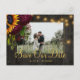 girasoles dorados amarillos, rosas borgoñosos y cuerdas de luces de manchas en una elegante foto de un granero marrón oscuro salvan la postal del boda de dátiles. ++++++++ Fácil de personalizar con sus nombres y texto en ambos lados! +++++++++ Adecuado para verano floral o otoño al aire libre jardín patio interior campo rústico o bodas con temática de casa de campo.