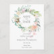 Diseñado para coordinar con nuestra colección de boda de rosas de verano garland. Con una delicada guirnalda floral de acuarela, esta elegante tarjeta de save the date botánica se puede personalizar con la información de save the date especial. El reverso presenta una guirnalda floral a juego que enmarca sus iniciales de monograma en texto blanco elegante sobre un fondo verde bosque. Diseñado por Thisisnotme©