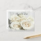 "Guardar la fecha" o "Gracias" postal. Solo agrega tu propio texto. Obtén los sellos postales correspondientes para ir con ellos. Un ramo de rosas blancas sobre un fondo de lino blanco. Fotografía de Minerva Bloom.