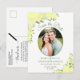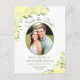 La postal Save the Date de esta boda rústica presenta un elegante diseño floral acuático con una foto en forma de oval rodeada de hermosos rosas pintados a mano y flores en tonos limón y amarillo canario. La tipografía incluye elegantes letras de guiones con espacio para sus nombres, la fecha de boda y la ubicación. La parte de atrás tiene espacio para una nota corta así como también para un lindo gráfico de "Lápiz en". Esta elegante tarjeta de moda de boyo es una manera maravillosa de hacer que su familia y amigos sepan de su próximo boda.