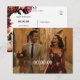 Deje que su tarjeta "Save the Date" marque el tono: romántico, personal e inconfundiblemente suyo. Esta postal de doble cara combina una elegancia atemporal con un calor vintage, con exuberantes flores borgoña en un lado y un diseño de foto completa en el reverso para su foto de compromiso favorita. La tipografía limpia y clásica resalta sus nombres y la fecha de la boda, mientras que el marco floral agrega un toque de belleza formal sin sobrecargar su imagen. Ideal para parejas que planean una boda de otoño o con tema floral, esta tarjeta personalizable está lista para imprenta, es compatible con el franqueo y es fácil de personalizar. No se necesitan sobres: simplemente agregue su dirección y envíe un poco de belleza por correo.