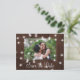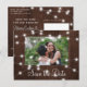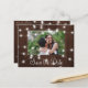 Rustic country photo wedding save the date postcard with glowing strings of white twinkle lights on brown barn wood. +++++++++ Easy to personalize with your picture, names, and text! ++++++++++ Suitable for evening lights, farmhouse, woodland destination, or barn wedding celebrations.