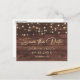 Boda de madera rústica personalizada que salva las postales de fecha con un fondo rústico de madera adornado con luces de cuerda. Personalice fácilmente este rústico ahorre la postal de fecha con los detalles de su boda. Para solicitudes de personalizado, por favor envíenos un mensaje.