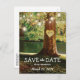 Árbol de primavera ahorra las postales de fecha con un romántico entorno de bosques y lagos con un árbol de berry rojo, corazón de amor tallado con tus iniciales, luces de trineo de cuerdas y una moderna plantilla para guardar la fecha.