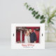 Sencilla y elegante, esta tarjeta postal moderna de fotos de la familia de árboles de Navidad en rojo y blanco Gingham Flannel es la manera perfecta de enviar cálidos deseos y novedades de confort y alegría a amigos y familia en esta temporada de vacaciones de invierno. Presenta una plantilla de fotografía familiar rodeada por un borde rojo con dos árboles negros en el frente con tipografía roja "Felices vacaciones". La parte posterior presenta un diseño de estrías rojas, blancas y negras. Reemplace la imagen con su propia foto familiar y la tipografía negra se puede personalizar para que se ajuste a su apellido y al año de su tarjeta de felicitación. Diseño rústico y de Navidades de campo.