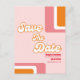 Retrocede en el tiempo y celebre su amor con nuestro Aviso de guardar la fecha de boda Retro Blush Rosa Naranja Groovy 70! Este diseño vibrante y elegante es más que un simple recordatorio de fecha; es un viaje nostálgico a la icónica era de los años 70, que encapsula el espíritu de amor, libertad y vibraciones groovy.