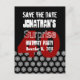 Salven la fiesta de cumpleaños número 40 de SURPRISE B001. Aquí está una moda guardar la postal de fecha en blanco y negro con acentos de rojo para un fiesta de 40 años. ¡Diversión! Todo el texto es personalizable.