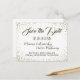 Esta tarjeta de guardar la fecha con fondo de confeti dorado luce formal y divertida y se puede personalizar para casi cualquier ocasión. También puedes cambiar el color de fondo y la fuente.