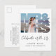 Anuncio de boda simple y elegante, tarjeta postal de anuncio de boda pequeña y invitación a recepción o fiesta después de la boda. La parte delantera presenta su foto en un marco recortado de "Sr. y Sra.", "Celebren con nosotros" en elegante letra cursiva y sus nombres, fecha de la boda y ubicación en tipografía moderna simple. En el reverso, puede personalizar el anuncio de su boda o fuga con más detalle, agregar una invitación a la recepción o fiesta y firmar sus apellidos de casados en una letra cursiva similar a una firma. Si necesita ayuda para recortar su foto para que sus rostros encajen bien dentro del marco de Sr. y Sra., no dude en hacérnoslo saber en juliehortondesigns@gmail.com