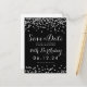 18ª fiesta de cumpleaños "Save The Date" diseño de plantilla con Purpurina de Faux Plata Confetti Negro y nombre y texto de fecha personalizados. ¡personalizable total!