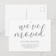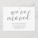 Caligrafía gris plateada simple Hemos movido la postal de Invitación de la casa