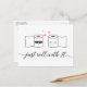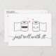 ¿Necesita una tarjeta de invitación de postergación del boda para reprogramar su boda 2020? Esta linda y divertida pareja de bodas de papel higiénico es una manera divertida de anunciar tu nueva o postergada fecha de boda. La parte delantera presenta al novio y a la novia mientras roda el papel higiénico y el texto "Sólo gira con él". La parte trasera tiene todos tus detalles de aplazamiento y espacio para una nueva fecha. Formato postal fácil de enviar por correo.