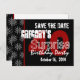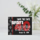Aquí tienes una tarjeta postal de guardar fecha moderna en negro y blanco con toques de rojo para una fiesta sorpresa de 40 cumpleaños. ¡Divertido! Todo el texto es personalizable.