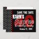 Aquí tienes una tarjeta postal de guardar la fecha de moda en negro y blanco con acentos de rojo para una fiesta sorpresa de cumpleaños número 40. ¡Divertido! Todo el texto es personalizable.