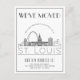 Una tarjeta postal de anuncio de cambio de dirección moderna y única de estilo deco para la hermosa ciudad de St. Louis. Esta tarjeta presenta una ilustración estilizada del horizonte único de la ciudad con su nombre debajo. A esto le sigue la información de su dirección en un estilo de línea abierta coincidente. Todos los elementos individuales de la tarjeta están desbloqueados, así que siéntase libre de cambiar o agregar cualquier detalle necesario utilizando la función de personalización.