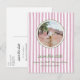 Postal De Anuncios Striped pink and greensave the date photo postcard
