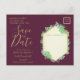 Suculentas Verdes Marco Dorado Marsala y Borgoña, o cualquier color de fondo (elija haciendo clic en personalizar más adelante) con detalles de falso foil dorado, hermosas suculentas de acuarela y un elegante marco dorado Tarjetas Postales de Ahorro de Boda con fuente de letra manuscrita de moda. ~ ¡Consulte mi tienda para ver toda la colección de bodas con este diseño!
