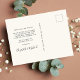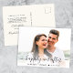 Tarjeta postal de anuncio de compromiso de crema ligera con tu foto superpuesta con "felices para siempre" en una elegante letra con florituras y tus nombres unidos por un corazón. En la parte posterior, personaliza tu anuncio y agrega tus nombres en una letra tipo firma.