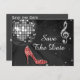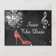Elegantes y glamurosas tarjetas postales de cumpleaños número 55 para guardar la fecha. Tendencias de brillo y glamour para guardar las fechas de tus celebraciones de cumpleaños número 55. Hermosa y deslumbrante imagen de destellos de diamantes plateados, joyas, nota musical, bola de discoteca retro plateada y funky y zapato de tacón alto de tacón aguja con brillo rojo sobre un fondo negro chic. Una tarjeta de guardar la fecha linda, elegante, de moda, bonita y con estilo para las fiestas de cumpleaños de las mujeres. A las mujeres les encantará este diseño genial, divertido, funky y femenino para sus fiestas glamurosas de música y baile. Si necesita ayuda para personalizar su producto, por favor contácteme a través de mi tienda y estaré encantado de ayudar.