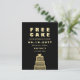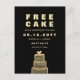 Una moderna y divertida tarjeta postal de "TARTA GRATIS Y BODA DE PROPINA" para ahorrar la fecha de la boda y hacer reír a tus invitados. El diseño presenta tipografía moderna con una ilustración de una tarta linda con foil dorado falso sobre un fondo negro. En el reverso de la postal, el diseño ofrece opciones para más detalles, incluyendo espacio para una dirección de respuesta. Personaliza el diseño reemplazando el texto con tus detalles. Por favor, contacta con el diseñador para cualquier solicitud de personalización del diseño.