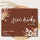 Asequible salve las postales de fecha en un diseño floral de terracota Boho "bebidas gratis (¡y nos vamos a casar!) para la divertida pareja que no puede esperar a celebrar en su boda con familia y amigos. Personalizado con sus detalles y su foto en la parte posterior.
