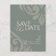 Combina la elegancia clásica y la sofisticación moderna con estas tarjetas postales de boda con foto de guardar la fecha, con una ilustración de damasco dibujada a mano. Simplemente elige un color que se adapte a tu estilo y personaliza con tus detalles