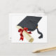Sombrero de graduación negro y diploma enrollado y asegurado con una cinta de color rojo carmesí