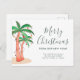 ¿Se está mudando a un destino tropical a estos Navidades? Esta cédula de invitación festiva se mueve con palmeras acuáticas decoradas con coloridas luces de cuerda y elegante tipografía de escritura. Personalizable fácil. Acuarela original © Michele Davies.