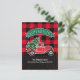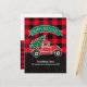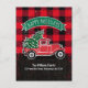Envíe un saludo de vacaciones rústico esta temporada para anunciar a la familia y amigos que se ha mudado. Este diseño presenta una camioneta roja vintage que lleva un árbol de Navidad en la parte trasera en una escena de nieve y hielo en invierno. Hay un cartel verde encima del camión que dice "Felices fiestas". Debajo está tu nombre y dirección para que puedas personalizar la tipografía blanca en una hilera de pinos. La parte posterior de la tarjeta también tiene una comprobación de búfalo con un mensaje y una firma para el personalizar. Diseñado por los artistas ©Tim Coffey y Susan Coffey.
