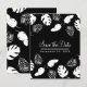 Postal De Anuncios Tropical Negro y Blanco Hojas Chic Guardar la Fech