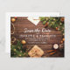 Celebra la temporada de las yuletides con un toque cálido y rústico. La postal "Save The Date", fiesta de Navidades, está muy bien diseñada y tiene un acogedor fondo de madera oscura, salpicado de elementos festivos como ramas brillantes de árboles, conos aromáticos de pino, deliciosos regalos, canela y luces brillantes de trineo, lo que hace falta para que el ambiente de las vacaciones sea muy agradable. Perfecto para reunir a la gente para celebrar unas vacaciones.