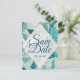 Triángulos de mármol mosaico verde azulado con guarnecido de oro Rosa y patrón geométrico. Boda moderna y moderna Ahorra las tarjetas de posteo de fecha con el moderno tipo de letra manuscrita a mano! ~ Revisa mi tienda para ver toda la colección de bodas con este diseño!