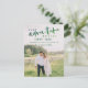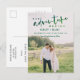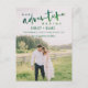 Elegante caligrafía manuscrita verde sombreada Moderna Nuestra aventura comienza boda de fotos Guardar la postal de Invitación de fecha
