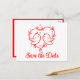 A sweet and cheerful "Save the Date" postcard designed for couples who love nature, warm moments, and a playful touch of personality. The whimsical lovebirds illustration and heart add a cute and unique feel that complements boho weddings, outdoor summer celebrations, and relaxed spring gatherings. The red and white color palette keeps everything bright, joyful, and full of charm. Personalize your postcard with your names, date, and location to share your happy news in a heartfelt, memorable way that reflects your unique style.