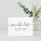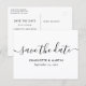 Elegant white wedding save the date postcard with a modern script font. Matching items available.