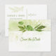 Un marco de botánicos rústicos acuarela enmarca su 'guarde la fecha' en la parte superior. Con hojas, ramas de pino, helechos y pastos en tonos de aguacate, salvia, oliva y verde primavera sobre un lavado de acuarela verde suave. Personalice con su propia información. Esto es parte de una colección más grande. Si desea este diseño en algo no mostrado, comuníquese conmigo a través de mi tienda o en shutterbug600@yahoo.com.