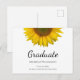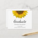 Class of 2023 graduation announcement postcard, with a yellow sunflower design on a white background. With black typography lettering, you can add your own information. A great way to celebrate that special graduate.