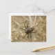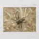 Esta postal muestra una fotografía detallada de una araña de jardín arrastrándose por una hoja de hierba sembrada. El bonito detalle de esta fotografía da una sensación de escala.