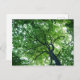Postal con foto mirando hacia lo alto de un árbol de haya en verano