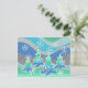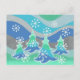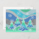 Un moderno y estilizado paisaje invernal con pinos espumosos y copos de nieve. Postcard con un diseño de personalizable verde, azul, gris plateado y blanco para que usted pueda personalizar con su propio texto, imágenes e ideas. Dibujo de lápiz de colores realzados digitalmente por Jess Perry.